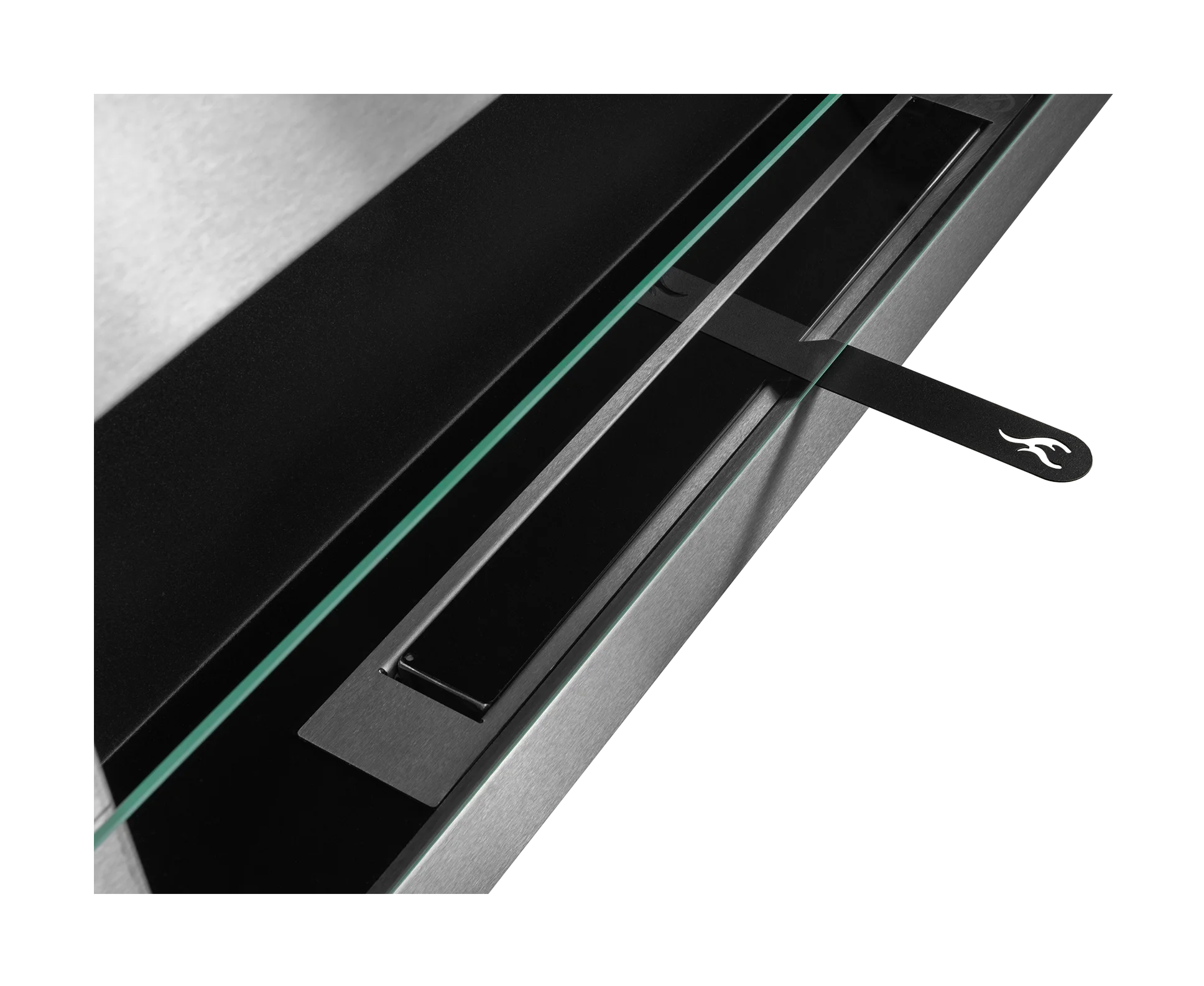 Der hängende Biokamin wird mit allen notwendigen Montagematerialien geliefert, wie z. B. Montageschienen und Dübel. Die Montageschienen sind gemäß der Anleitung anzubringen. Diese Schienen sind so konzipiert, dass sie den Kamin nicht in seiner gesamten Länge abdecken, sondern möglichst ergonomisch gestaltet sind.
