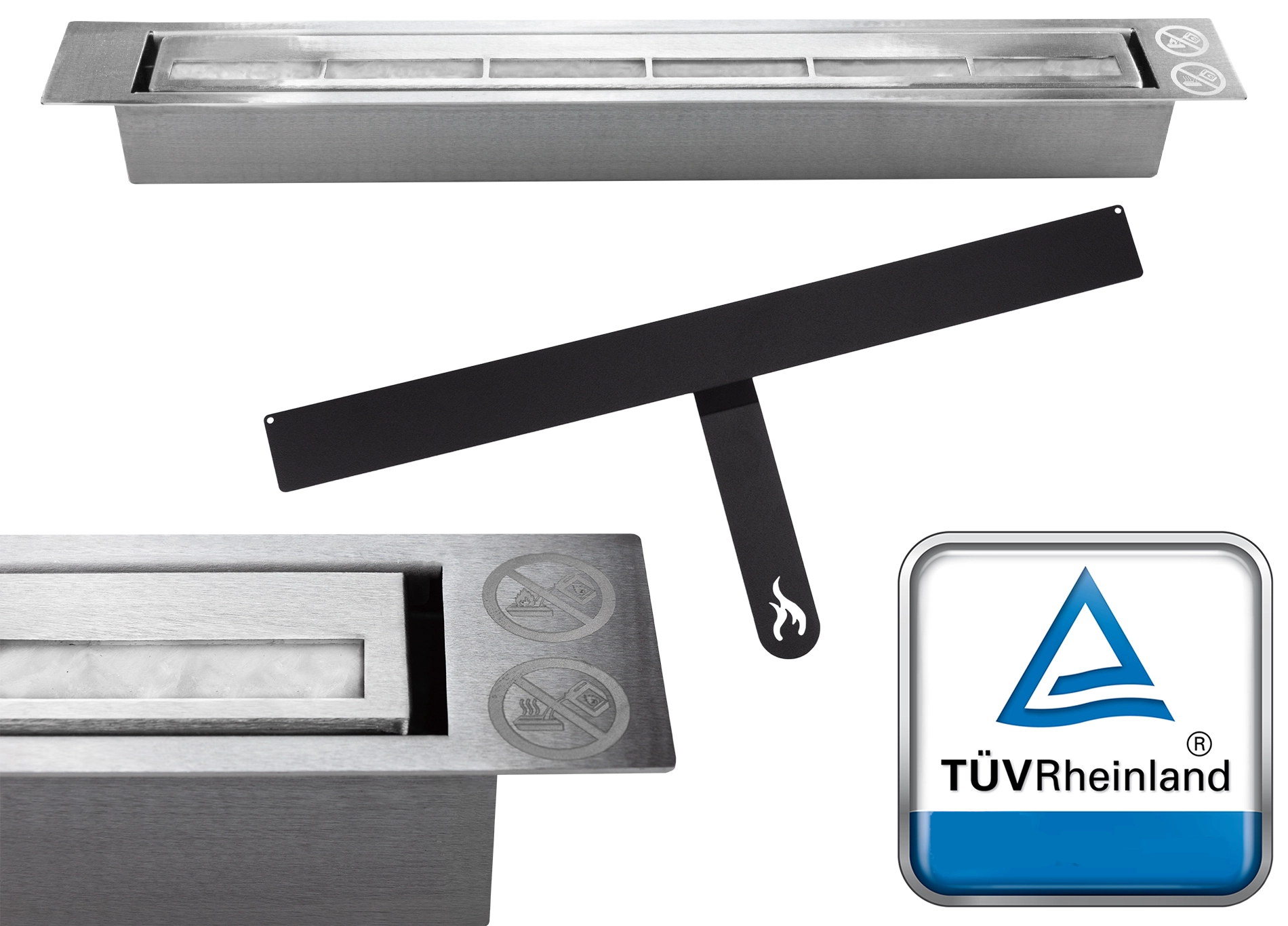 Unsere hängenden Biokamine verfügen über einen Brenner mit einem TÜV-Sicherheitszertifikat, das von dem renommierten Labor TÜV Rheinland ausgestellt wurde und die Sicherheitsaspekte unserer Produkte prüft. Der Brenner ist mit einem doppelten Boden und einer saugfähigen Einlage ausgestattet, die ein unerwünschtes Verschütten von Bioethanol verhindert.