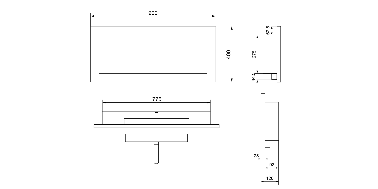 - Hänge-Biokamin – Biokamin 900×400 Schwarz Matt