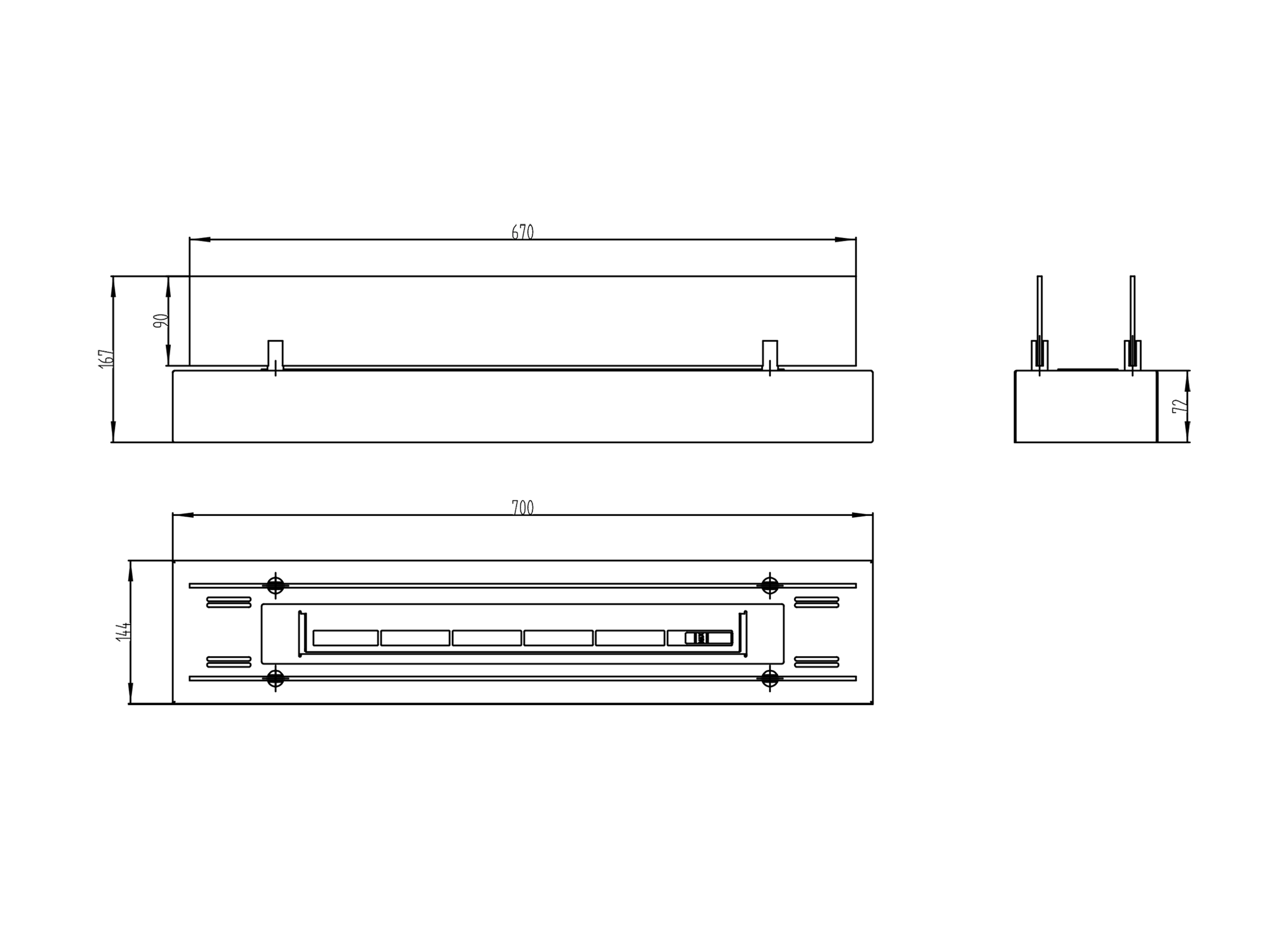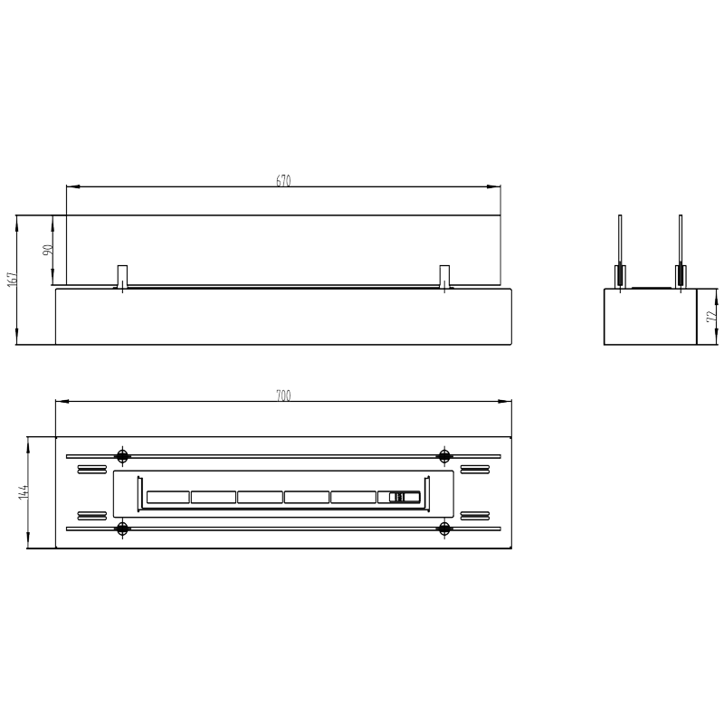 - Maße: 70cm x 14,4cm x 16,7cm