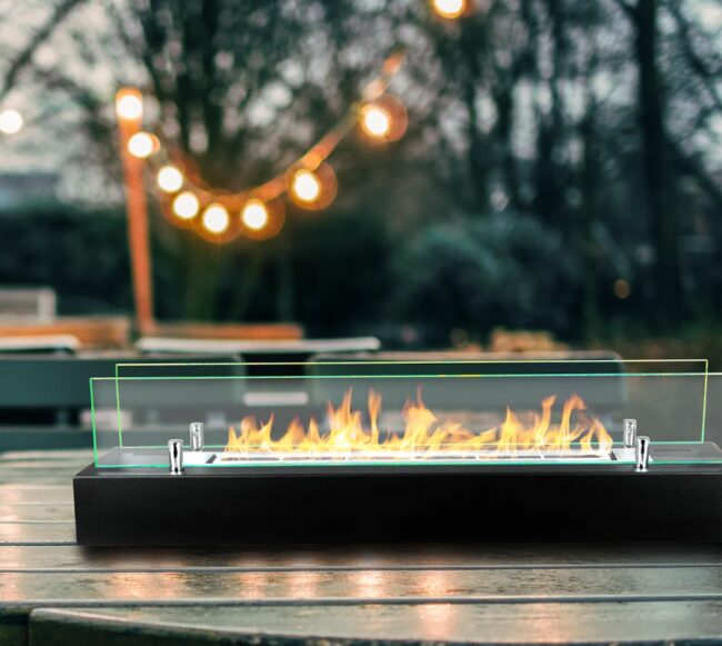 Freistehende Biokamin-Einsatz mit Glas 700mm Schwarz Matt