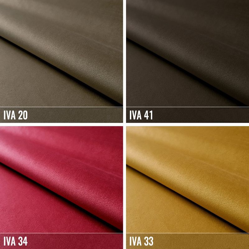 Ein samtartiger Polsterstoff. Die Oberfläche verfügt über eine dezente Glanzwirkung und ist angenehm im Griff mit einer spürbaren dichten Veloursstruktur, die sich je nach Haarrichtung leicht verändert. Dieser Stoff erfreut sich großer Beliebtheit aufgrund seiner Weichheit und leichten Pflege. Er ist mit einer Anti-Pilling-Behandlung und einer hydrophoben Ausrüstung ausgestattet.