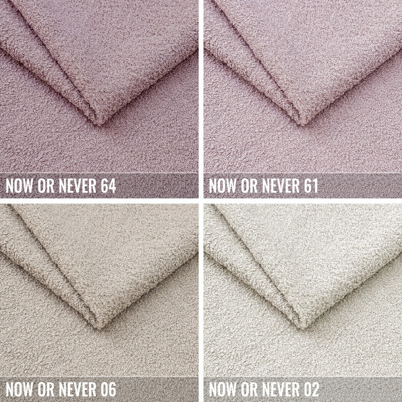 POLSTERSTOFF: „NOW OR NEVER“ ist ein Bouclé-Stoff, der aus dekorativ verdrehtem Garn mit Schlaufen, Knoten und Schleifen gefertigt ist. Er ist elegant und zugleich modern, dabei äußerst angenehm im Griff und sehr strapazierfähig. Der Stoff ist in einer klassischen Farbpalette mit einem sanften Glanz erhältlich, der die unregelmäßige und vielschichtige Textur perfekt betont.