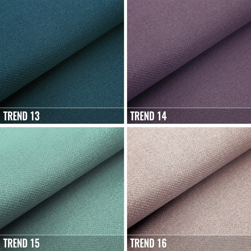 POLSTERSTOFF: Gewebe mit feiner Webart und zart spürbarer Textur im Griff. Perfekt weich und angenehm anzufassen. In der TREND-Kollektion wird eine universelle und dezente Farbpalette verwendet. Sie lässt sich gut zu allem kombinieren, dank der breiten Palette von Farben – von beige-braunen, traditionellen grauen Tönen bis zu lebhaften, betonten Farbtönen. Es eignet sich ideal für klassische und moderne Innenraumgestaltungen. Es erfreut sich aufgrund seiner Elastizität und Widerstandsfähigkeit großer Beliebtheit. Am wichtigsten ist, es neigt nicht zum Verfilzen!