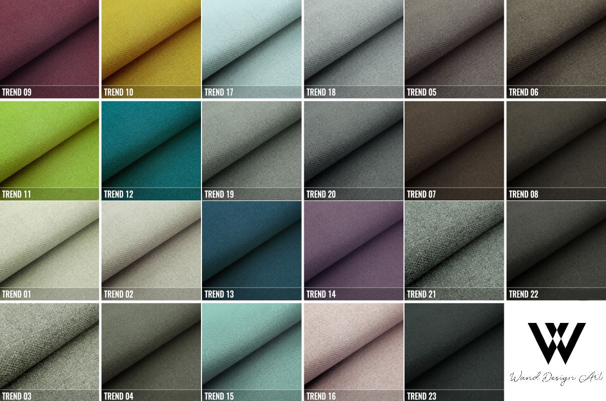 POLSTERSTOFF: Gewebe mit feiner Webart und zart spürbarer Textur im Griff. Perfekt weich und angenehm anzufassen. In der TREND-Kollektion wird eine universelle und dezente Farbpalette verwendet. Sie lässt sich gut zu allem kombinieren, dank der breiten Palette von Farben – von beige-braunen, traditionellen grauen Tönen bis zu lebhaften, betonten Farbtönen. Es eignet sich ideal für klassische und moderne Innenraumgestaltungen. Es erfreut sich aufgrund seiner Elastizität und Widerstandsfähigkeit großer Beliebtheit. Am wichtigsten ist, es neigt nicht zum Verfilzen!