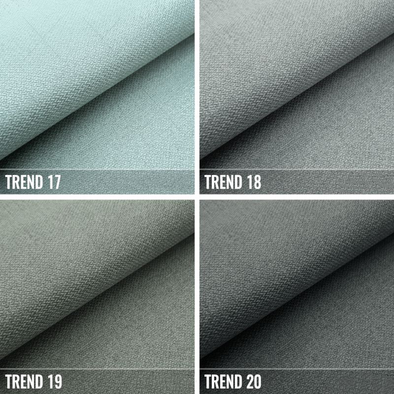 POLSTERSTOFF: Gewebe mit feiner Webart und zart spürbarer Textur im Griff. Perfekt weich und angenehm anzufassen. In der TREND-Kollektion wird eine universelle und dezente Farbpalette verwendet. Sie lässt sich gut zu allem kombinieren, dank der breiten Palette von Farben – von beige-braunen, traditionellen grauen Tönen bis zu lebhaften, betonten Farbtönen. Es eignet sich ideal für klassische und moderne Innenraumgestaltungen. Es erfreut sich aufgrund seiner Elastizität und Widerstandsfähigkeit großer Beliebtheit. Am wichtigsten ist, es neigt nicht zum Verfilzen!