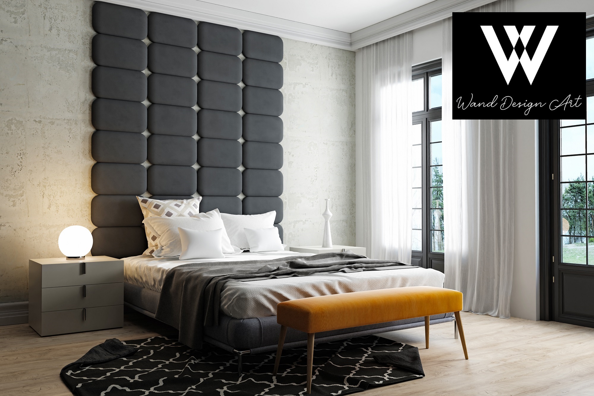 Gepolsterte Paneele, die Eleganz und Funktionalität vereinen, bringen Stil und Gemütlichkeit in Innenräume. Erhältlich in verschiedenen Farben und Mustern, sind sie ideal für Schlafzimmer, Wohnzimmer und Büros und verbessern die Ästhetik und Akustik der Räume.