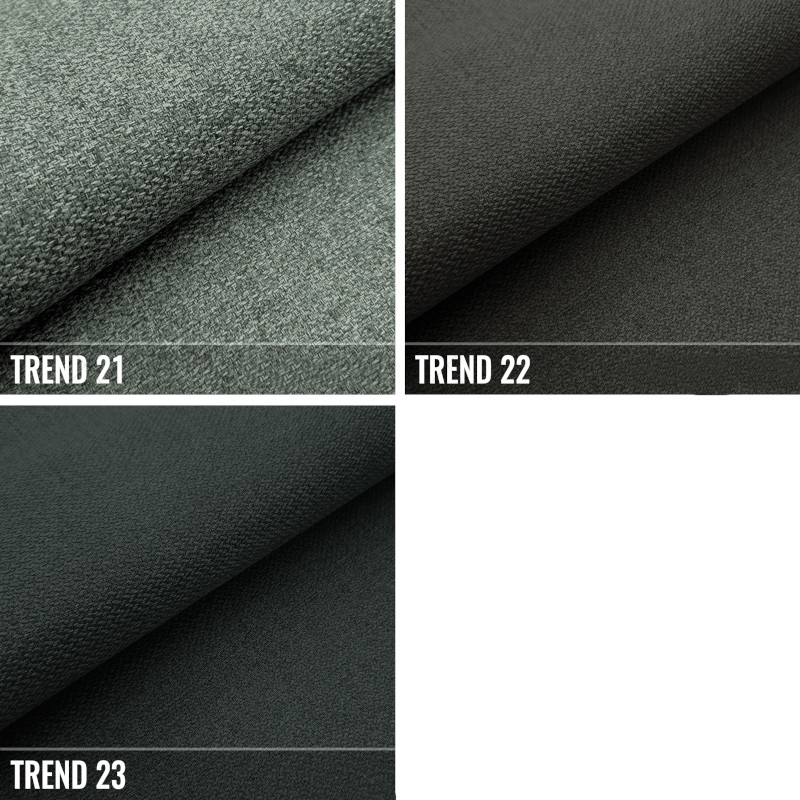 POLSTERSTOFF: Gewebe mit feiner Webart und zart spürbarer Textur im Griff. Perfekt weich und angenehm anzufassen. In der TREND-Kollektion wird eine universelle und dezente Farbpalette verwendet. Sie lässt sich gut zu allem kombinieren, dank der breiten Palette von Farben – von beige-braunen, traditionellen grauen Tönen bis zu lebhaften, betonten Farbtönen. Es eignet sich ideal für klassische und moderne Innenraumgestaltungen. Es erfreut sich aufgrund seiner Elastizität und Widerstandsfähigkeit großer Beliebtheit. Am wichtigsten ist, es neigt nicht zum Verfilzen!