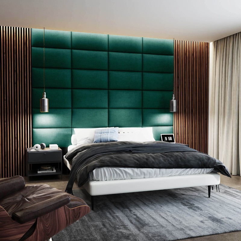 Gepolsterte Paneele, die Eleganz und Funktionalität vereinen, bringen Stil und Gemütlichkeit in Innenräume. Erhältlich in verschiedenen Farben und Mustern, sind sie ideal für Schlafzimmer, Wohnzimmer und Büros und verbessern die Ästhetik und Akustik der Räume.