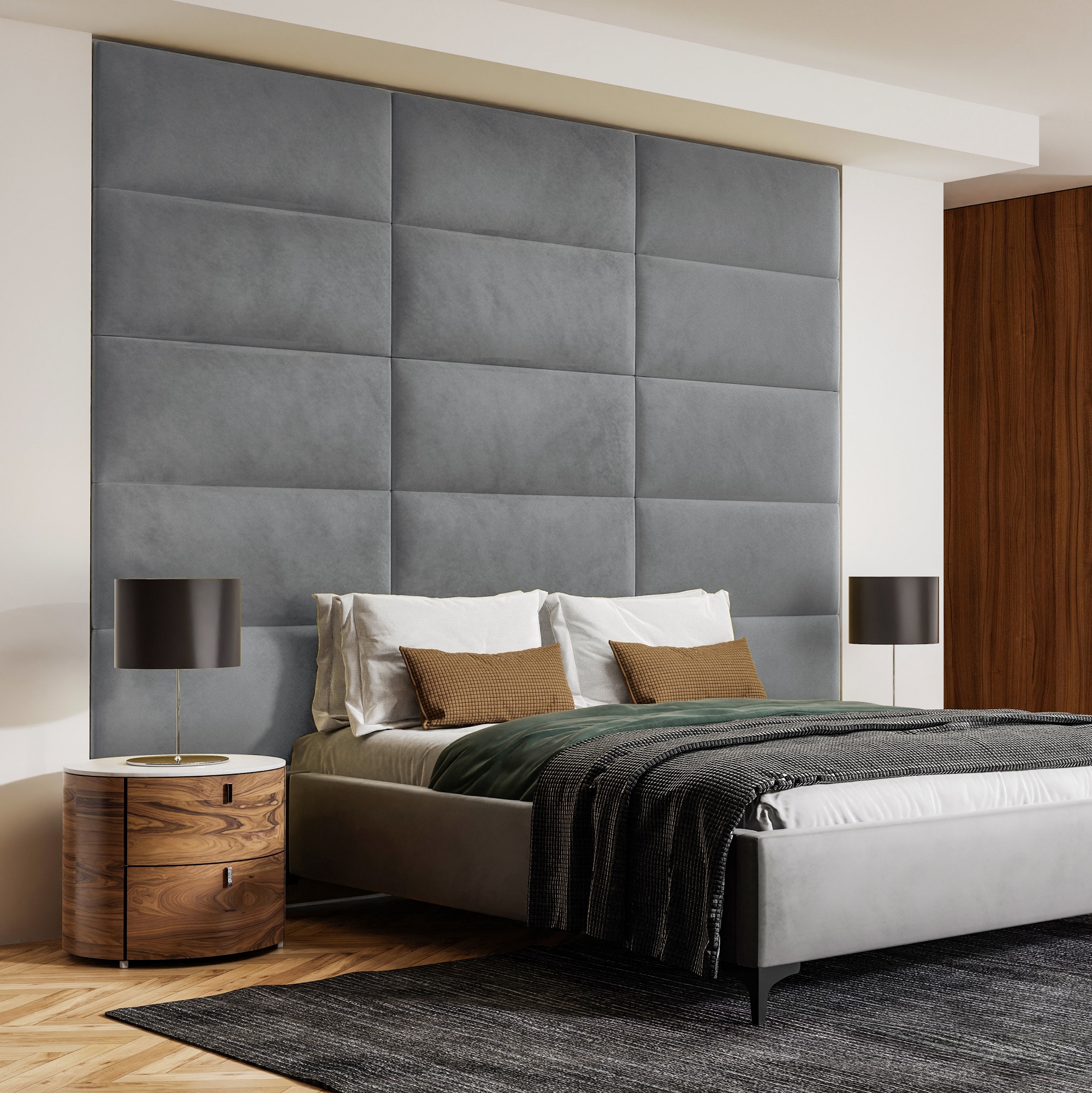 Gepolsterte Paneele, die Eleganz und Funktionalität vereinen, bringen Stil und Gemütlichkeit in Innenräume. Erhältlich in verschiedenen Farben und Mustern, sind sie ideal für Schlafzimmer, Wohnzimmer und Büros und verbessern die Ästhetik und Akustik der Räume.