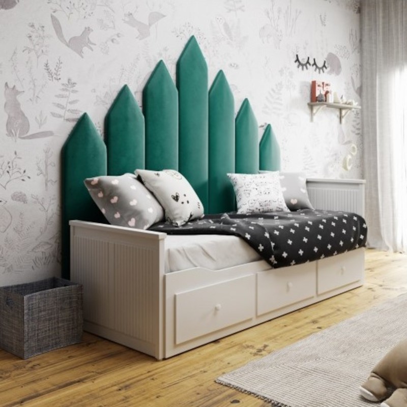Gemütlichkeit, Unkonventionalität, Einzigartigkeit – diese Merkmale beschreiben zweifellos am besten das Muster der gepolsterten „Spitze“ -Paneele, die wir in unserem Sortiment vorbereitet haben. Man kann sie auch als Hauch von Frische bezeichnen, denn die präsentierten Veredelungselemente zeichnen sich in jeder Hinsicht aus und werden sicherlich eine interessante Gestaltungsidee vor allem in modernen Projekten sein. Wo wird „Spitze“ am besten funktionieren? Gepolsterte Wandpaneele in dieser Form werden sich besonders gut in Kinderzimmern bewähren, denn damit lassen sich erstaunliche Kompositionen schaffen, mit denen die Kleinen von der schönen Einrichtung begeistert sein werden.